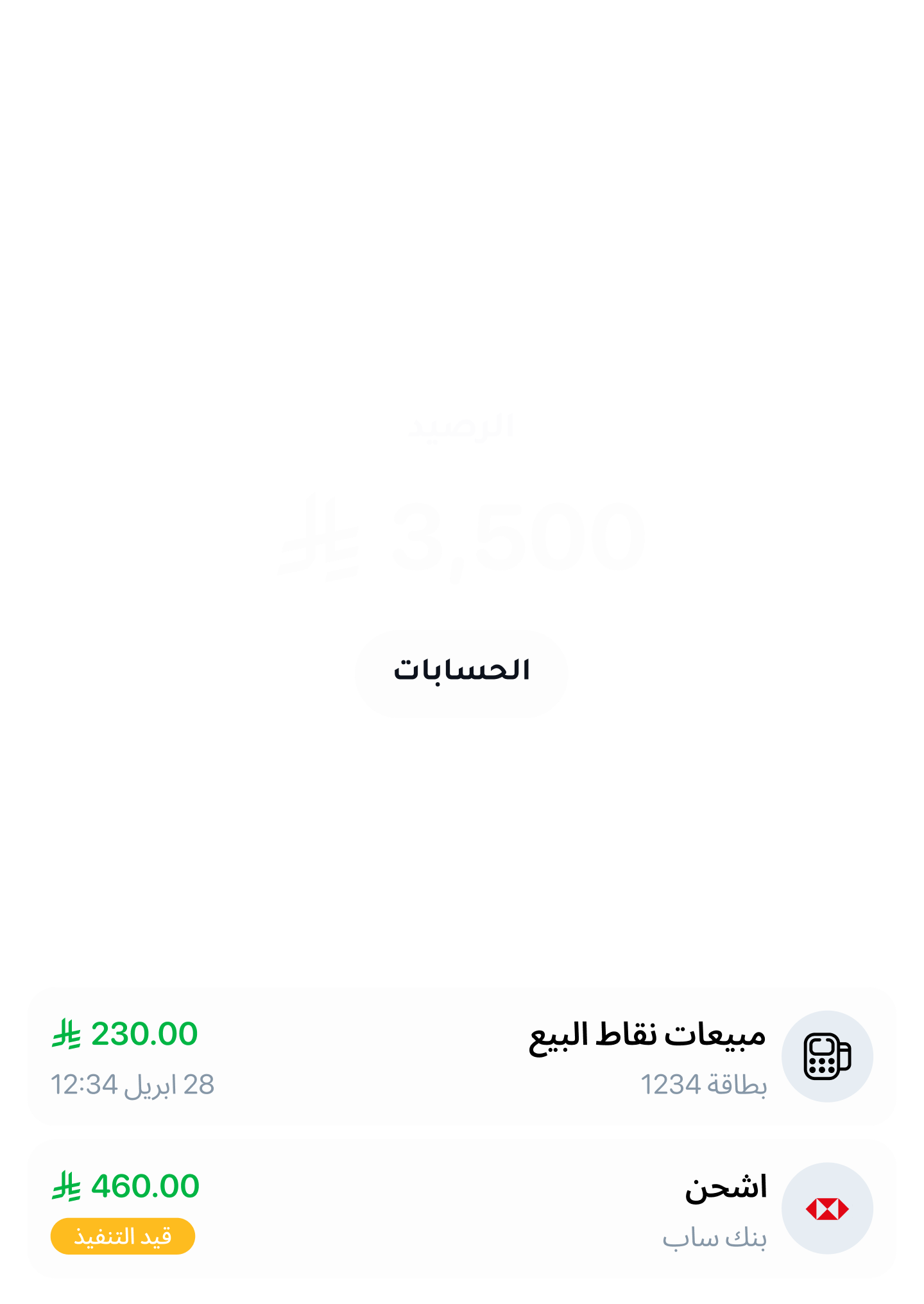 حساب الأعمال الذي يعطيك تسوية فورية للمبيعات إلى حسابك، مع قبول وإرسال المدفوعات والتحكم في المصروفات والحصول على التمويل لتنمية منشأتك، وكلّ ذلك من منصة واحدة.