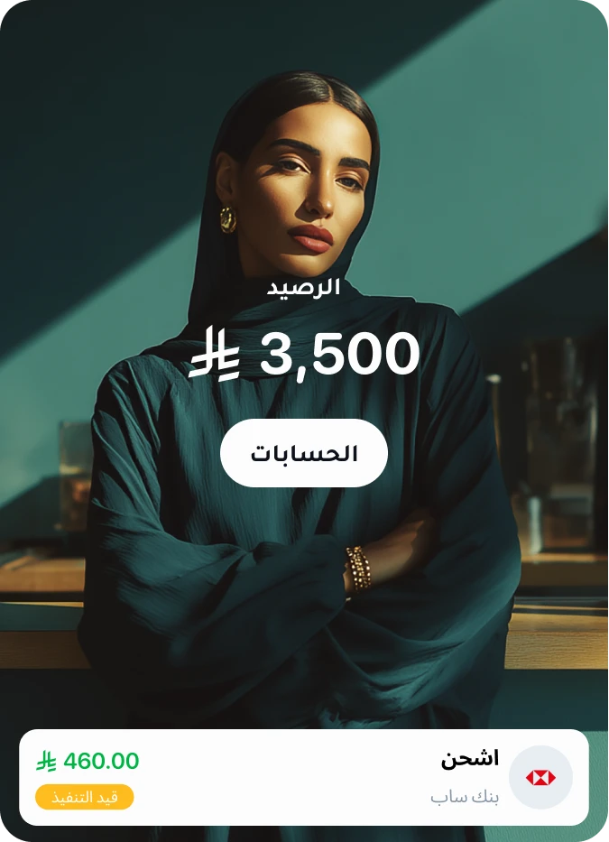 حساب الأعمال الذي يعطيك تسوية فورية للمبيعات إلى حسابك، مع قبول وإرسال المدفوعات والتحكم في المصروفات والحصول على التمويل لتنمية منشأتك، وكلّ ذلك من منصة واحدة.