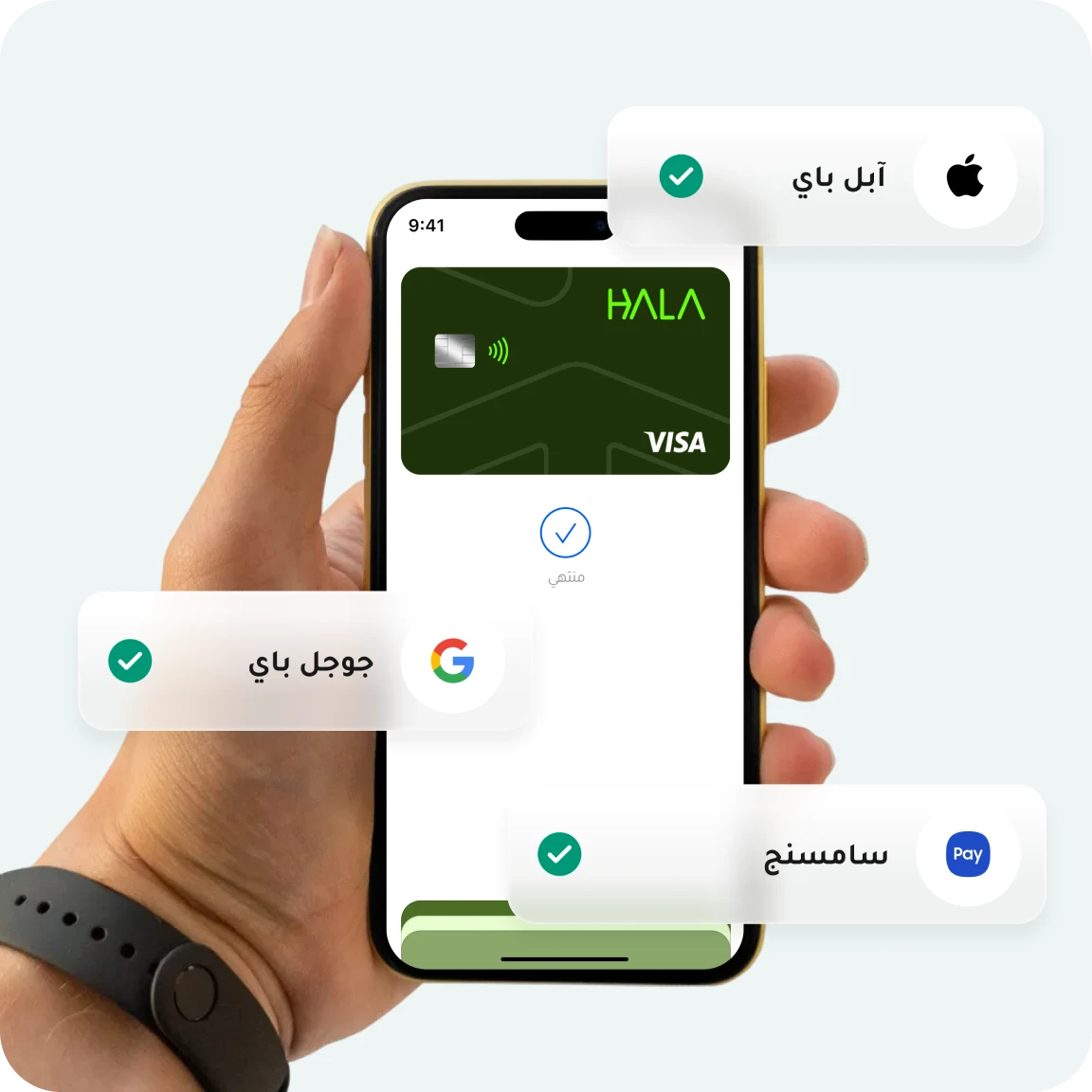 تعمل بطاقة هلا مع أهم المحافظ الرقمية، بما فيها آبل باي، سامسنج باي وجوجل باي.